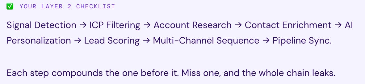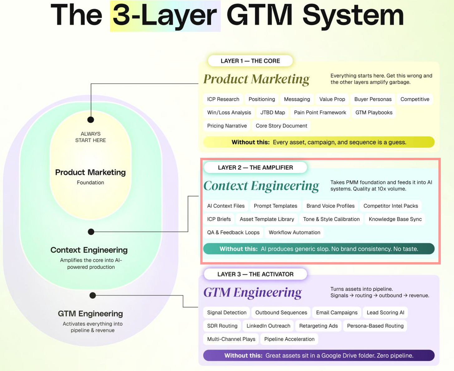 Great post! The distinction between Product Marketing and GTM Engineering as Layer 1 and 2 is a very helpful mental model. I currently did the manual Layer 1 work at my new job (icp, positioning, messaging, competitive..) and starting to tackle Layer 2 now. This gave me a lot of clarity on the system I need to build. Looking forward to learning more about this!