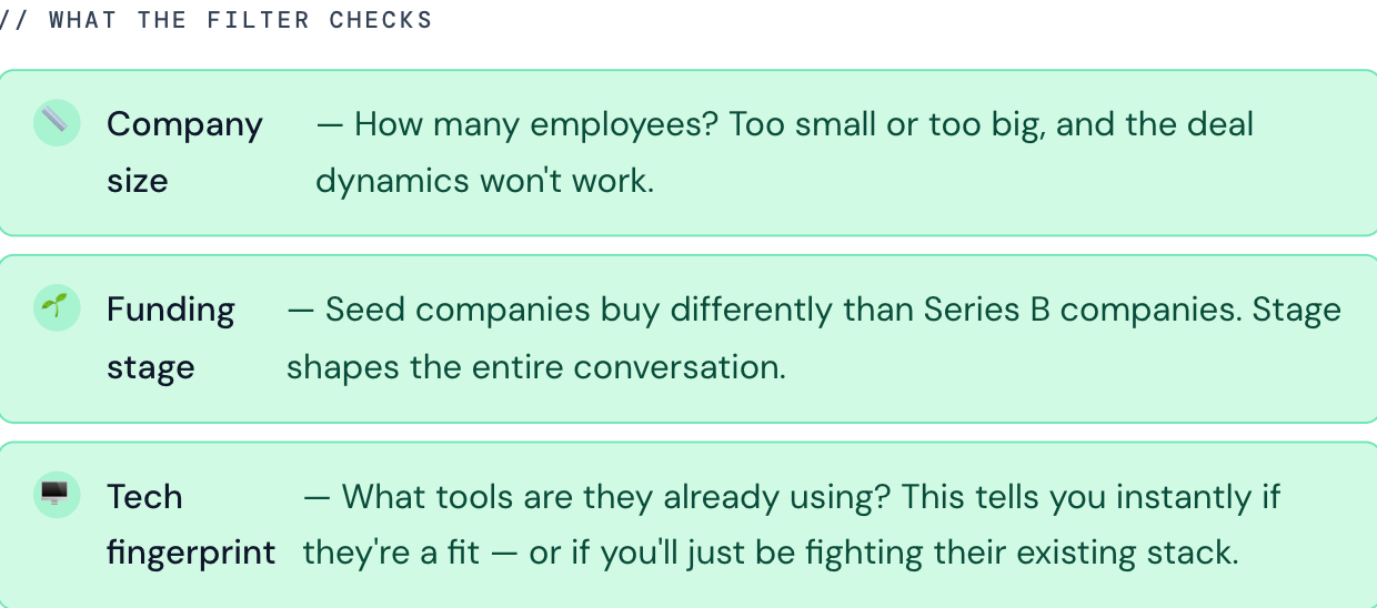 This is where ICP Filtering comes in. ICP stands for Ideal Customer Profile. Think of it as your rulebook for who actually belongs in your pipeline.
