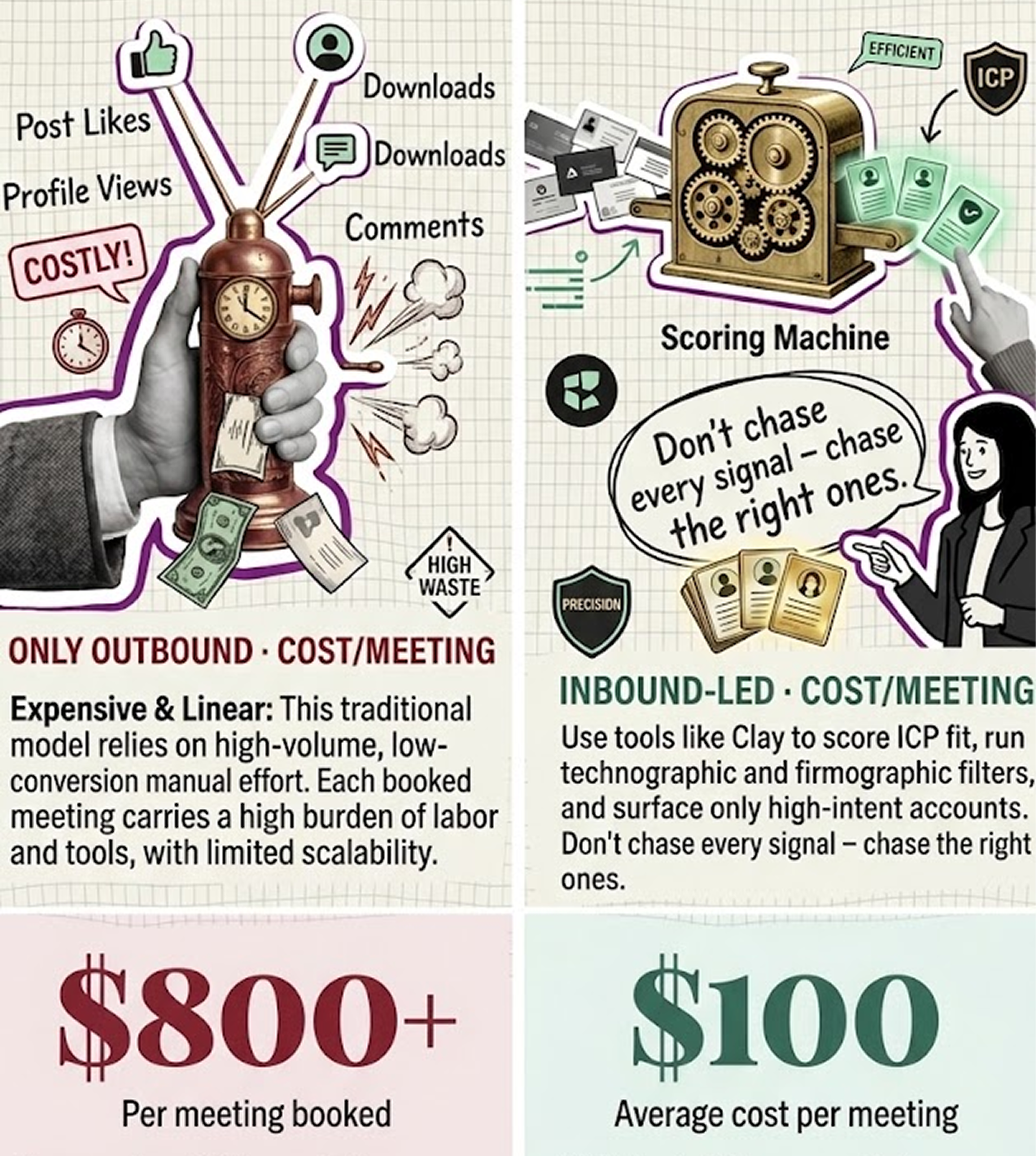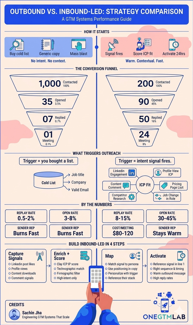 Here’s how “only outbound“ works: You buy a list. You write a generic copy. You mass blast. Rinse, repeat, report low numbers to your manager, and blame the market.